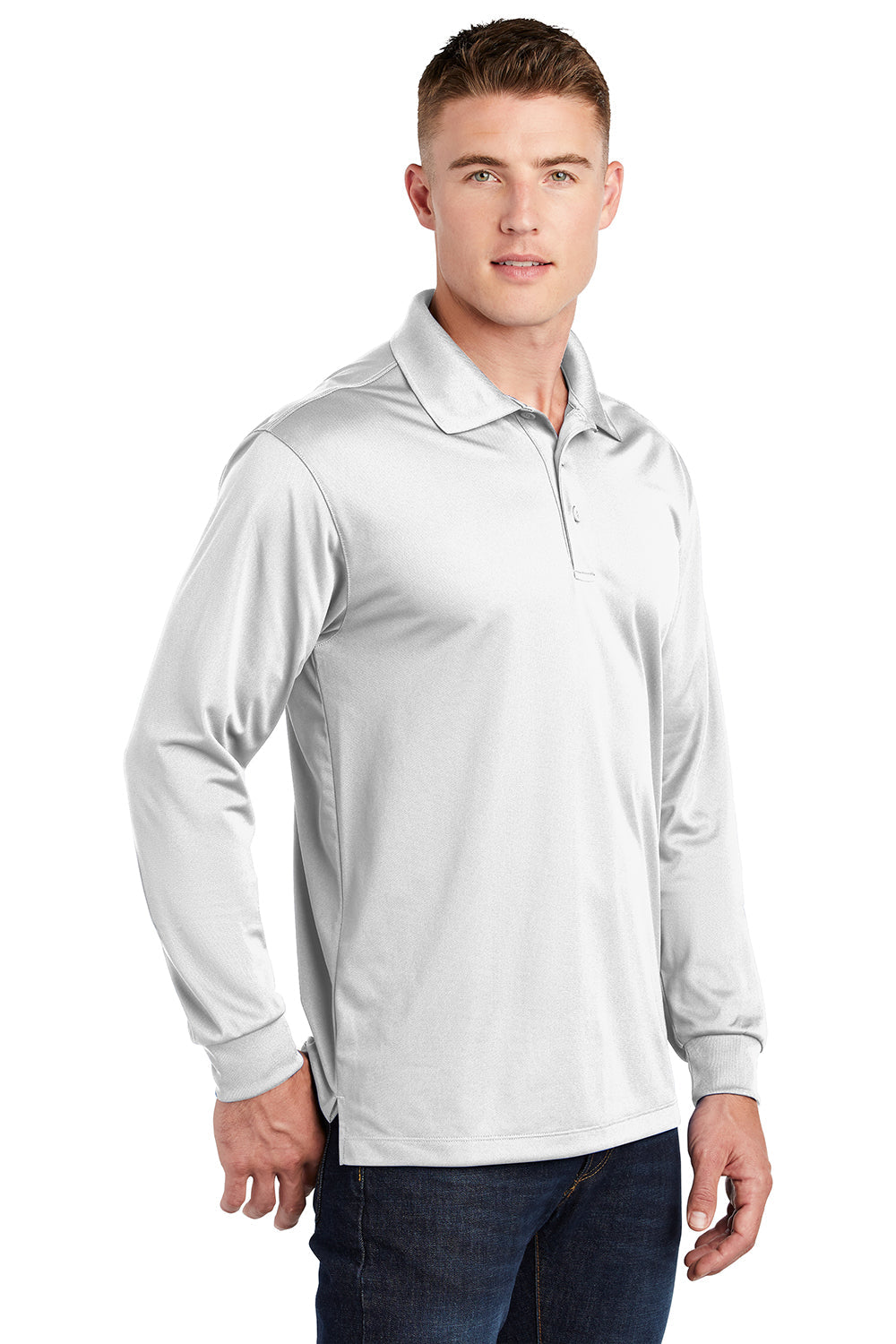 Sport-Tek Mens Sport-Wick Moisture Wicking Long Sleeve Polo Shirt - White
